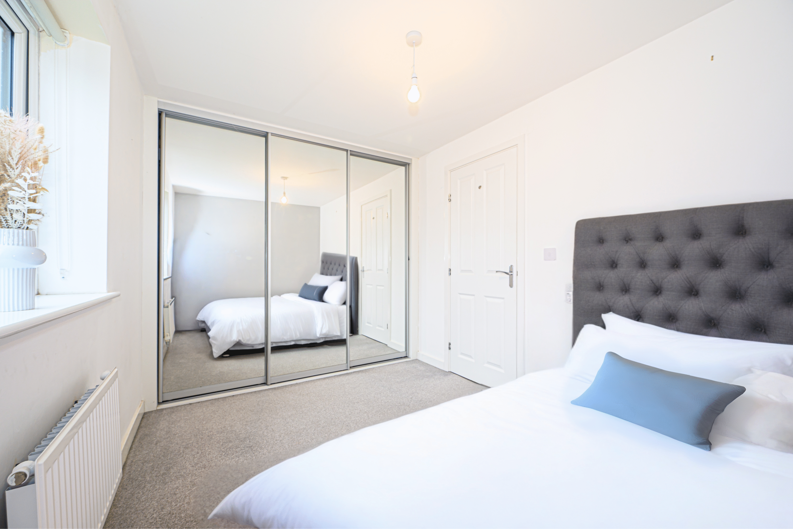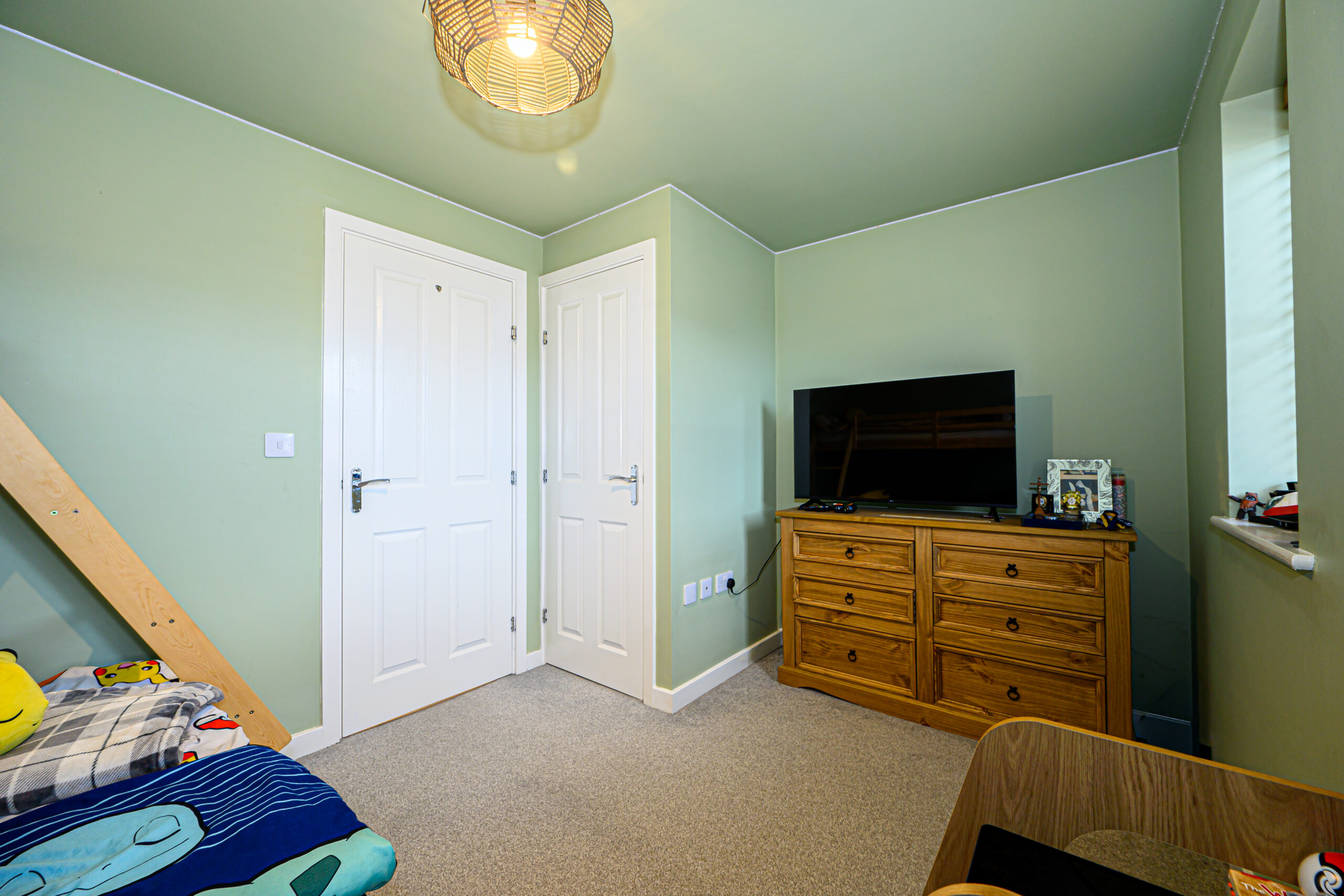 Generously sized front-facing bedroom with built in storage cupboard.