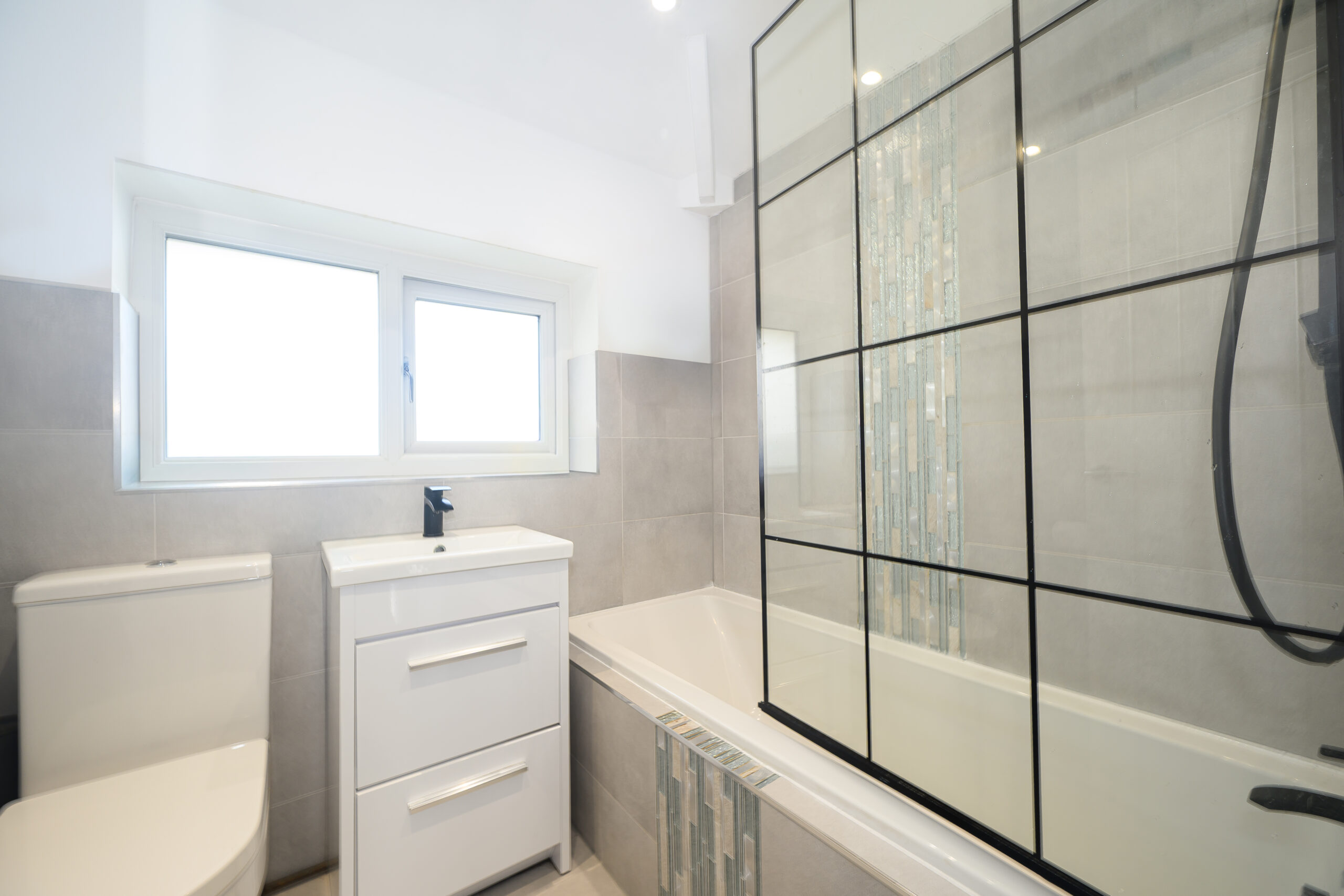 A well-presented main bathroom fitted with contemporary fixtures and finishes.