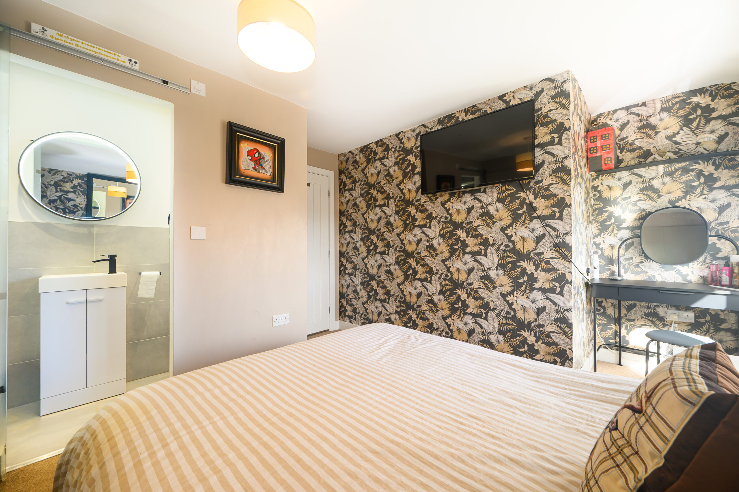 The first floor offers four good-sized bedrooms, providing flexibility for families, guests, or home working. The master bedroom benefits from built-in wardrobes and a private ensuite shower room, creating a comfortable and practical retreat.